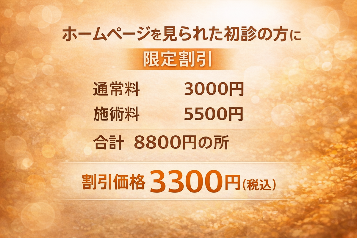 立ち仕事がとてもつらくなってきました。インターネットでこちらに出会い、最初は強い痛みが出ましたが、4回目ぐらいから、ウソのように消えました。まだ信じられません。朝起きるのも、かがむことも、何年振りかで楽になりました。自分でも驚いています。
