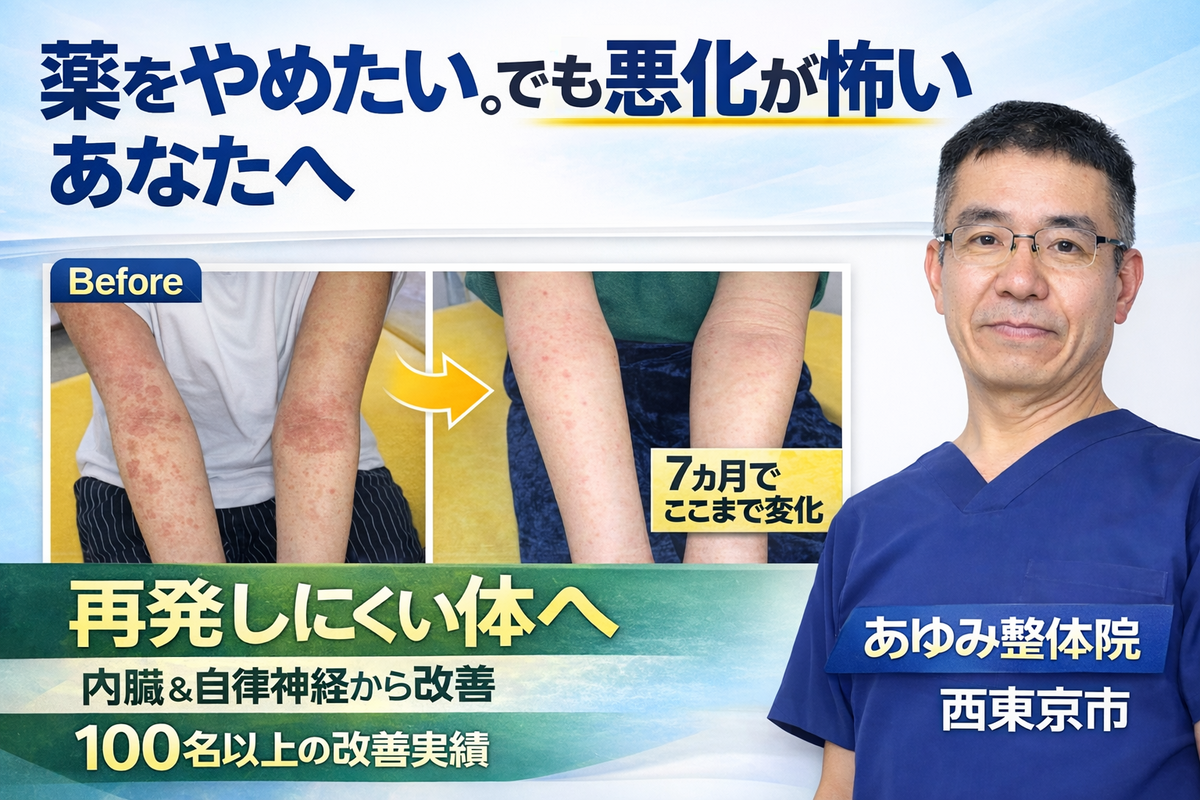 患者様からは「整体でアトピーの治療ができるなんて知りませんでした。」と喜びのお声をいただきました。